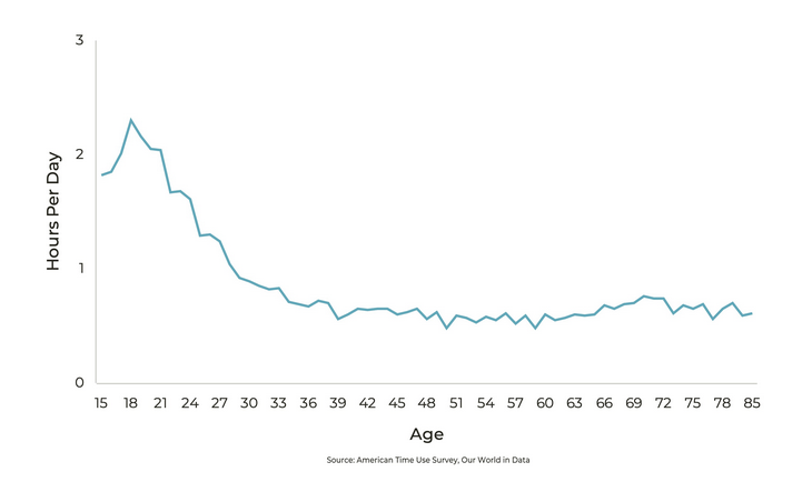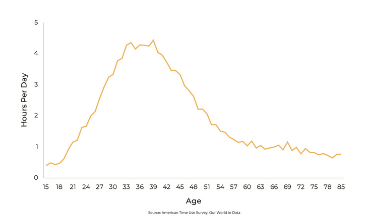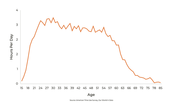 American Time Use Survey measured how much time people spend with others, and the resulting graphs show just how precious and fleeting time really is. These graphs can feel depressing, but I share this for two reasons: