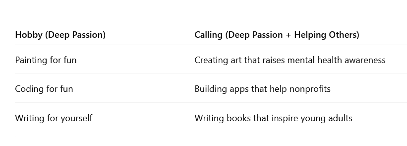 Calling: a deep passion that also helps others.