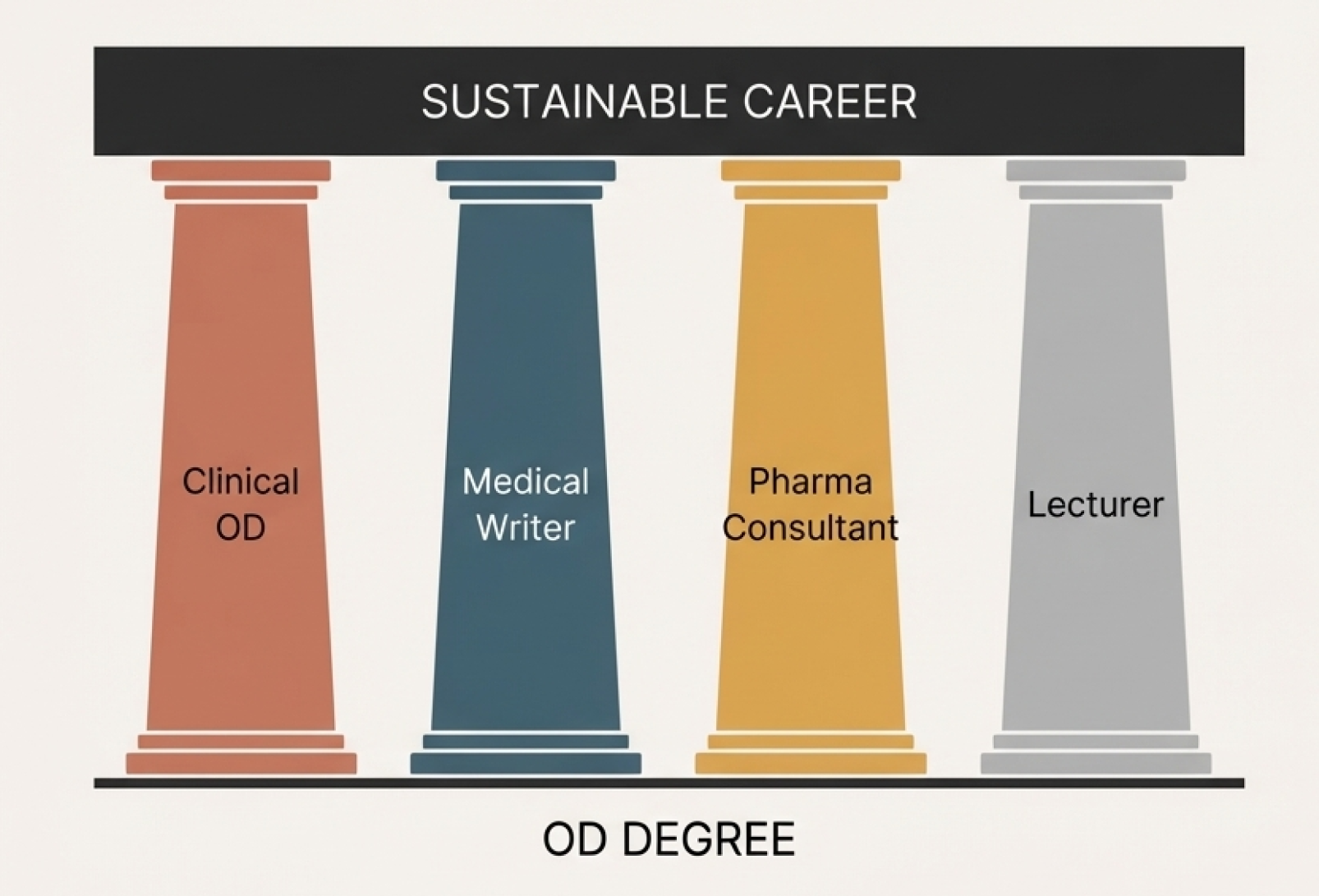 For example: Clinical optometrist, 3 days/week, Medical writer on Thursdays, and Industry consultant on Fridays
